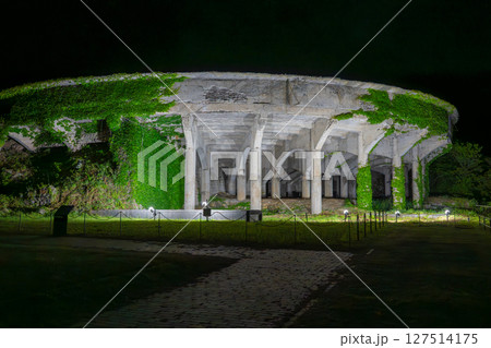 佐渡金山 北沢浮遊選鉱場跡 ライトアップされた50mシックナー
