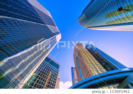 日本の東京都市景観 冬晴れの澄み切った青空が広がる汐留のオフィス群を望む