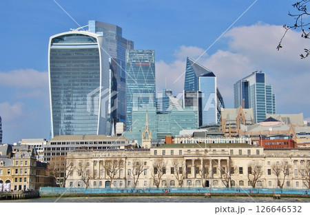 イギリス テムズ川とシティ・オブ・ロンドンの高層ビル