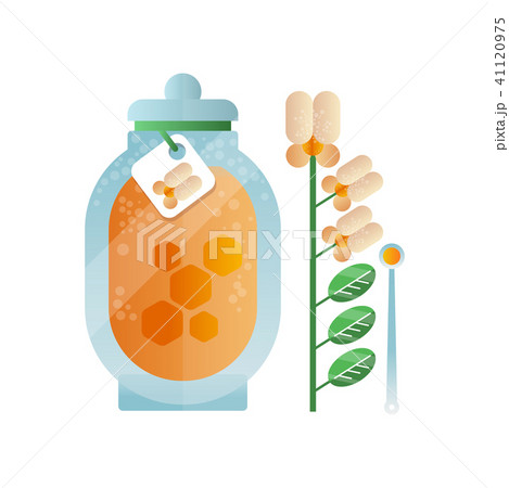 Glass jar of honey and melilot flower, natural herbal organic product vector Illustration on a white