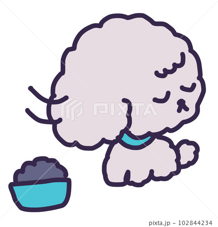 ごはんを食べないかわいいトイプードルの子犬のイラスト