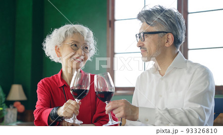 ワインを飲むシニアカップル