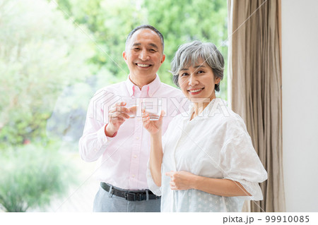 コップを持つシニア夫婦