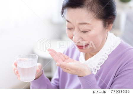 薬を飲むシニア女性