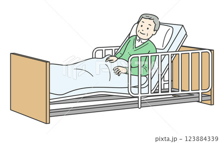 ベッドで横になる高齢男性と介護ベッドのイラスト