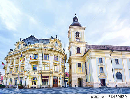 ルマニアシビウのラージ広場、Large Square in Sibiu Romania