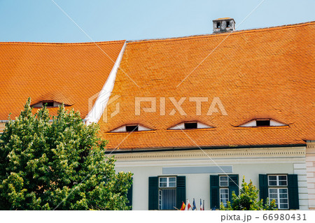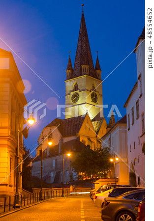 Sibiu, Romania. Cityscape with Council Tower, morning summer light, beautiful city in Transylvania.
