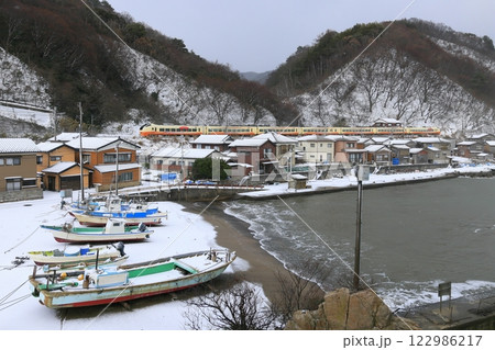 雪景色の笹川流れを走る特急いなほ