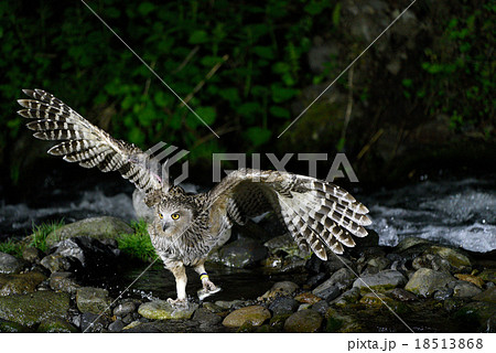 飛び立つシマフクロウ
