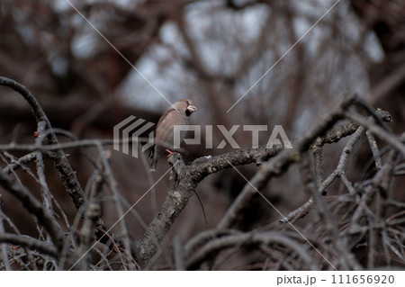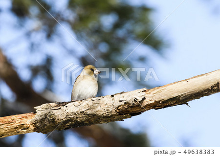 枝に止まるアトリ科シメ
