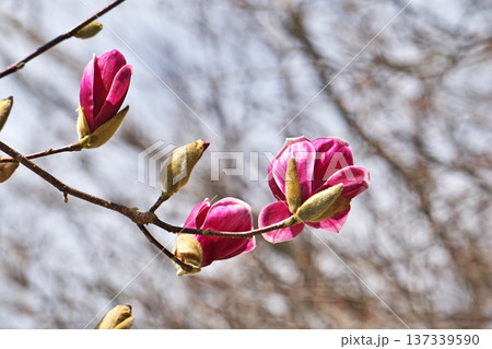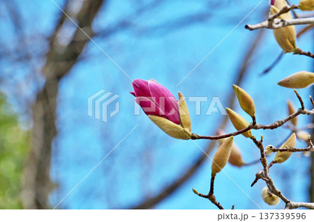 春先に大輪の美しい紫紅色の花を咲かせる紫木蓮