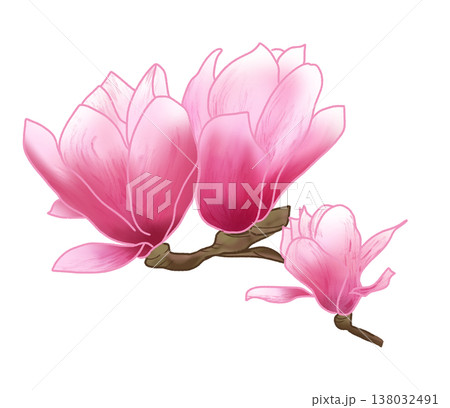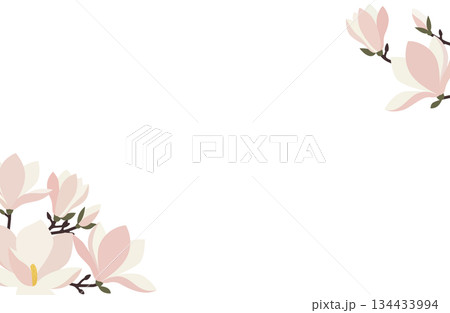 和洋折衷な木蓮の枝と花のフラットデザインイラストエレメント