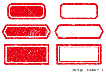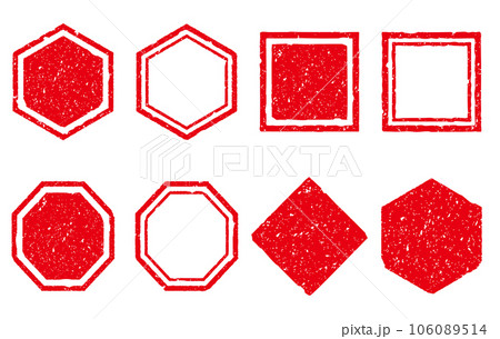 四角や多角形のかすれた和風はんこフレーム 赤