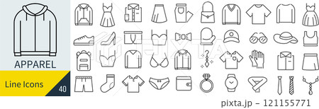 ベクターでモノクロのアパレルに関する線画アイコンセット