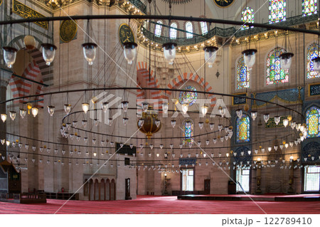 Beautiful chandelier of Suleymaniye mosque, Istanbul. No people.