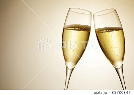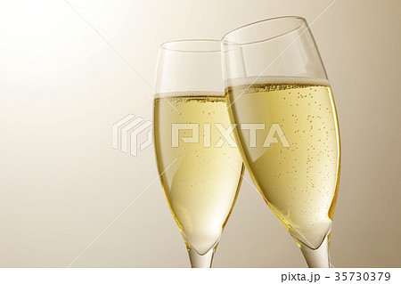 よく冷えたシャンパン(スパークリングワイン)が注がれたフルートグラス