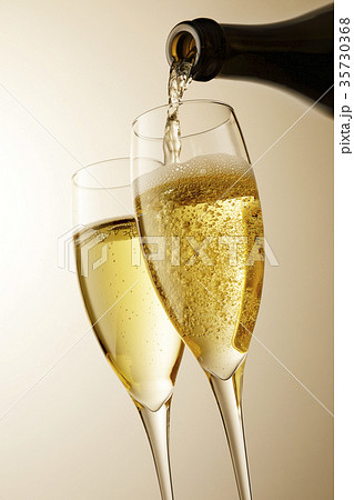 よく冷えたシャンパン(スパークリングワイン)をシャンパン用のフルートグラスに注ぐ