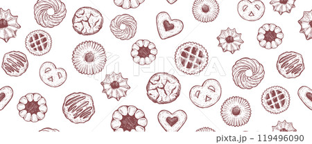 Cookie pattern on white, hand drawn illustration.