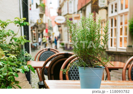 植物が飾られたテラス席