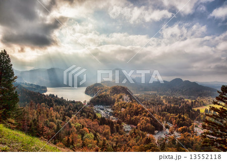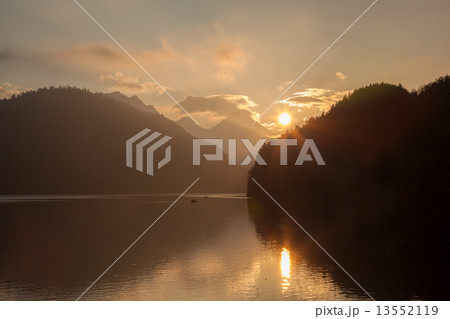 Schwangau lake in Bavaria Alps against sunset, Germany