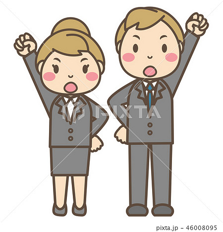シュプレヒコールをあげるスーツを着た男性と女性
