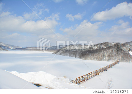 冬の凍結する夕張シューパロ湖
