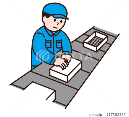 ライン作業する作業着姿の男性
