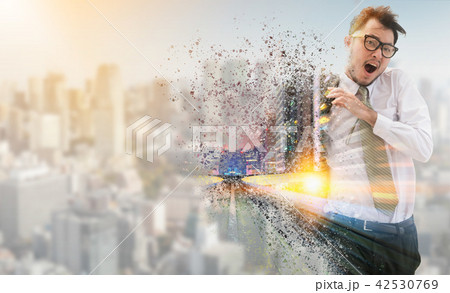 Double exposure surreal businessman running fast.