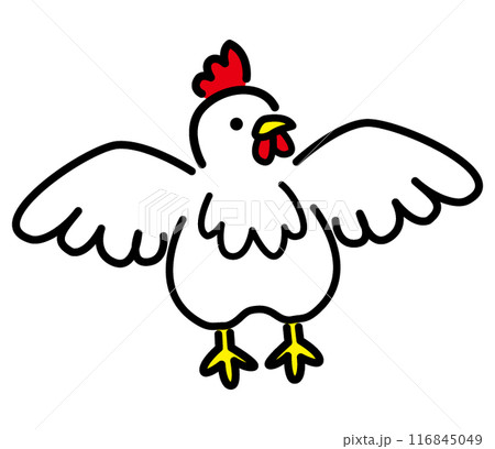 白い鶏と卵の手描きアイコンイラスト 白背景の切り抜き