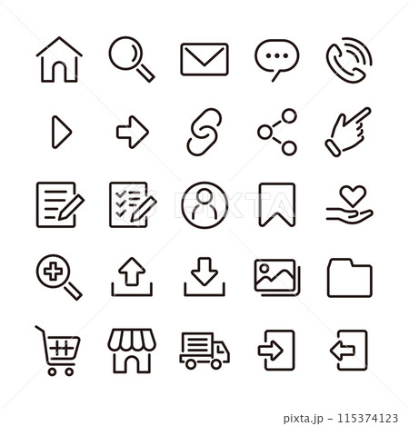 Webショップのアイコンのセット WEBサイト HP オンラインストア ネットショッピング 通販