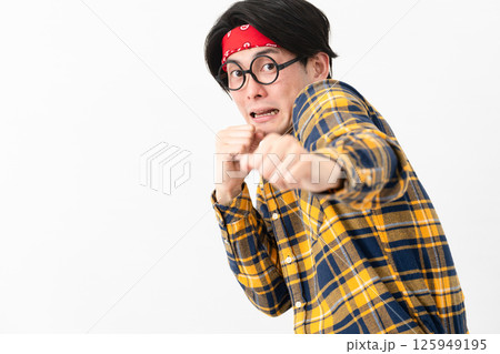 チェック柄の服を着た若い男性