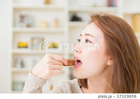 シリアルバーを食べる女性
