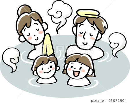 温泉につかってリラックスする4人家族