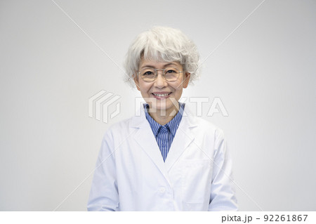 白衣を着たシニア女性 カメラ目線 ポートレート