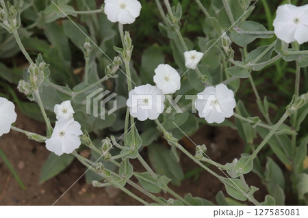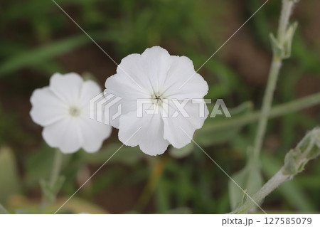 春の庭に咲く白いスイセンノウの花