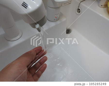 手洗い場 洗面所と手 片手 女性の手