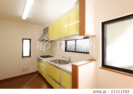 住宅 設備 キッチン I型 黄色 シンプル小物なし 施工例