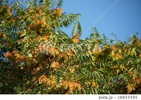 満開のシンジュ(ニワウルシ)の花