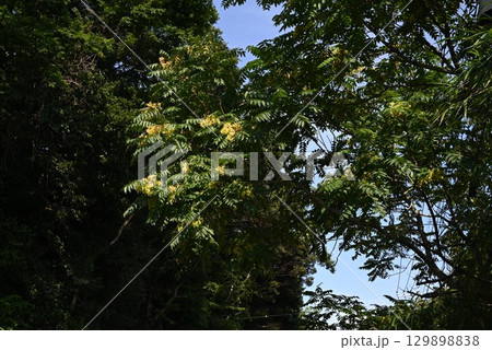 自然 植物 ニワウルシ、中国渡来の落葉高木。若い木の木肌は独特の網目の様な粒々模様