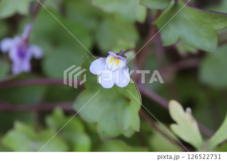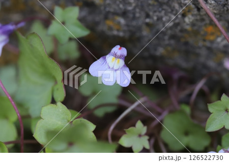 春の道端に咲く薄紫色のツタバウンランの小さな花