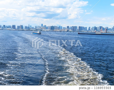 日本の横浜都市景観 初入港のクリスタル・シンフォニーなど望む。(右に大さん橋)=令和7年2月13日