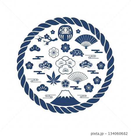 日本の伝統文様が並んだ上品で豪華な丸型和風デザインイラスト