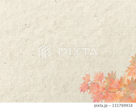 生成りの木綿生地の上に紅葉柄をあしらった背景画像1