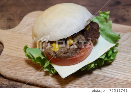 手作りパンでハンバーガー
