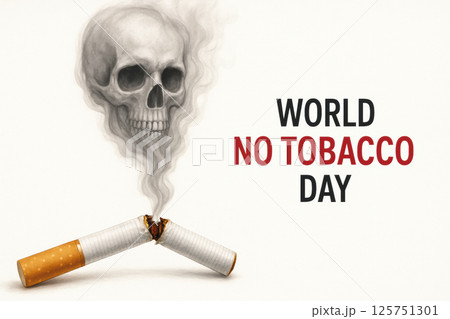 Broken cigarette with smoke forming skull symbolizes dangers of smoking for World No Tobacco Day