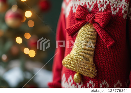 Festive sweater with christmas bell and bow design for holiday season fashion. AI generation