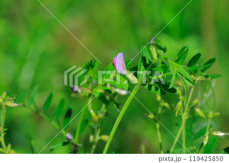 春3月の野原に咲しげる薄紫色のカラスノエンドウの花