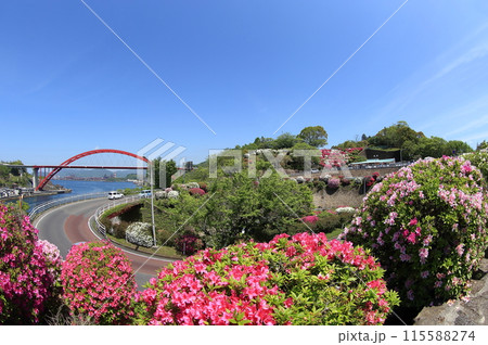 【広島県】桜が満開の第二音戸大橋(音戸の瀬戸)