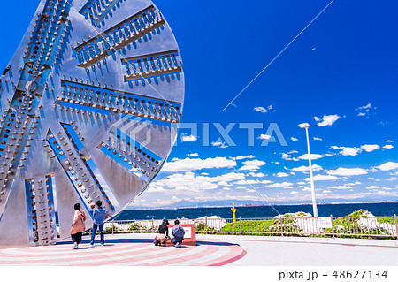 「海ほたる」のシールドマシンオブジェ 青空バック