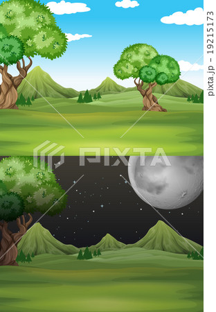 Nature forest landscape at night scene
